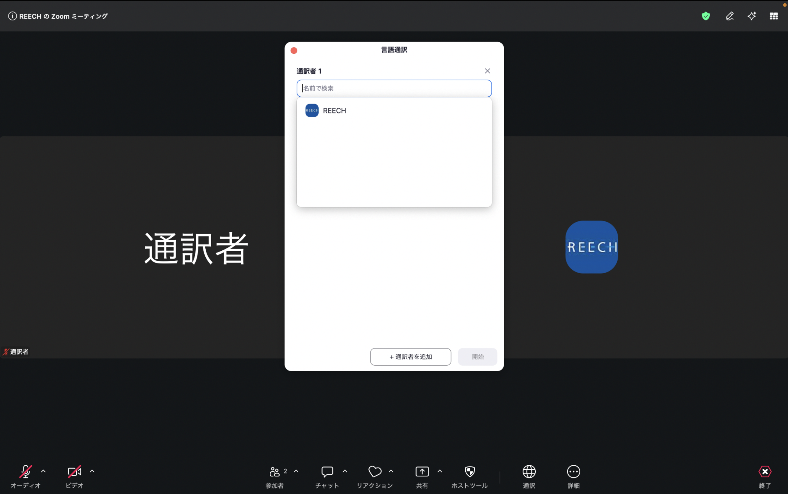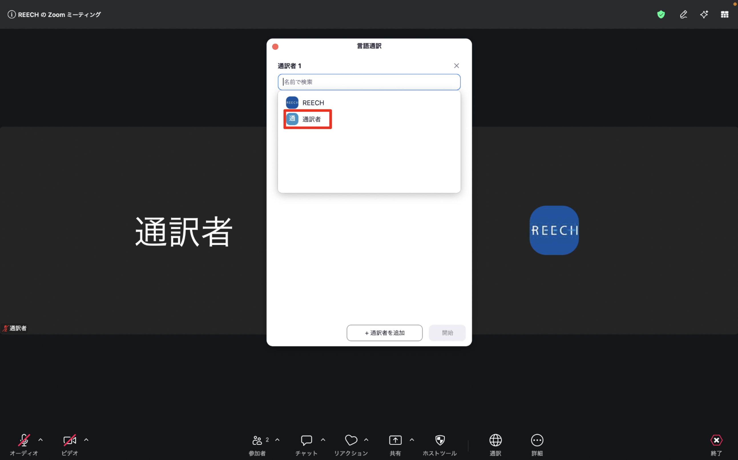 ブラウザ版から参加:名前検索に「通訳者」が表示されません