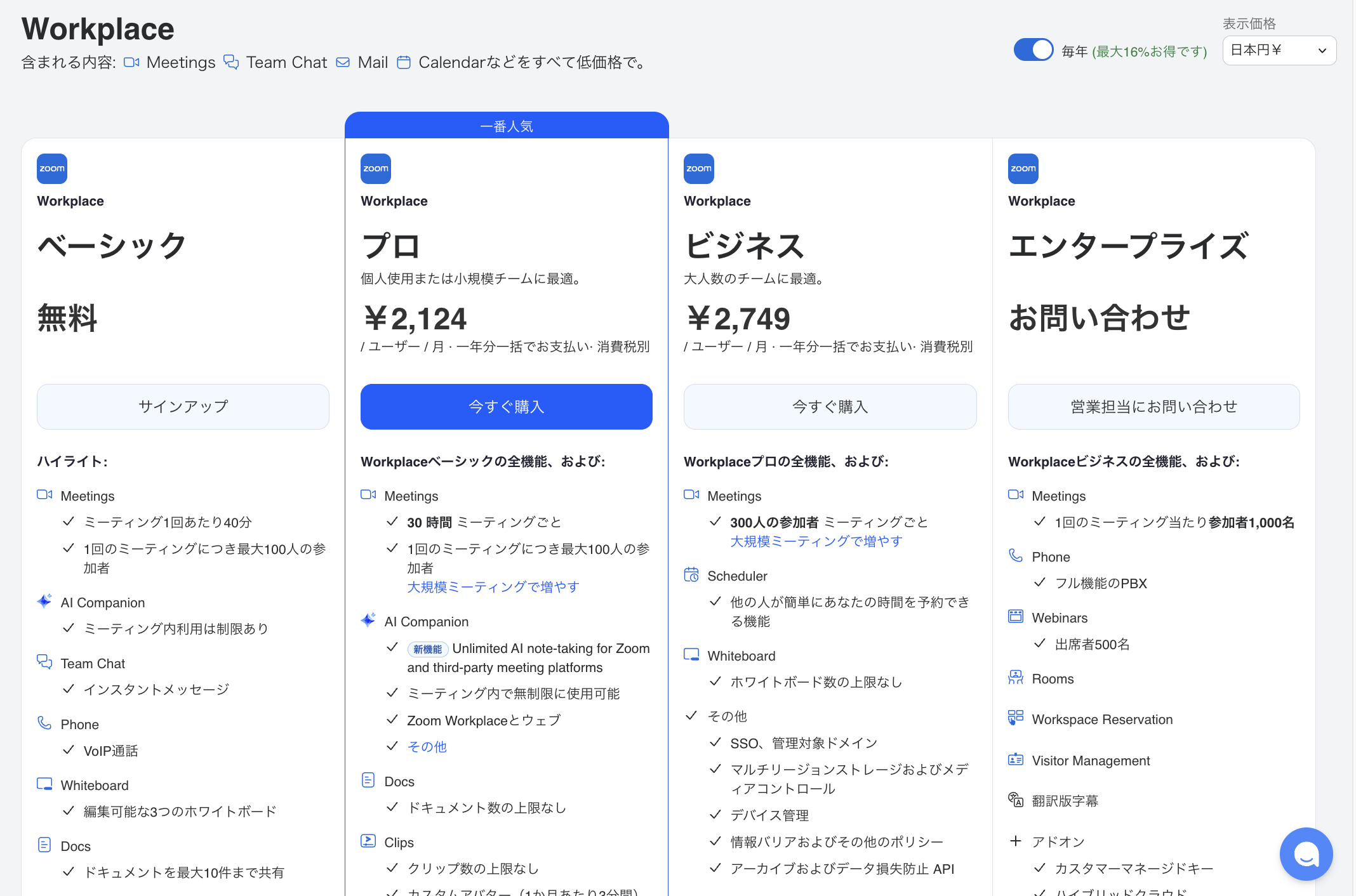 同時通訳機能は「会議のホストになるアカウント」が有料プラン(プロ以上)であることが必要です。
